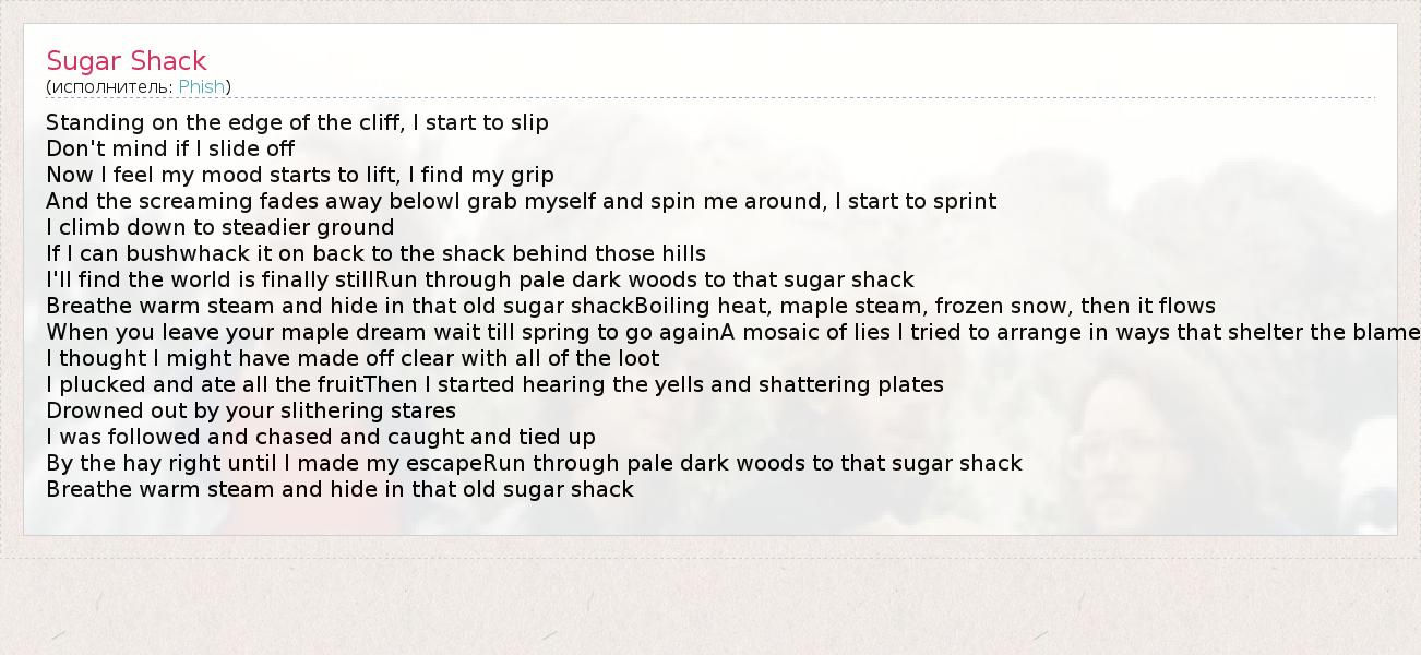 А как ты думаешь, о чем песня "Sugar Shack" ?