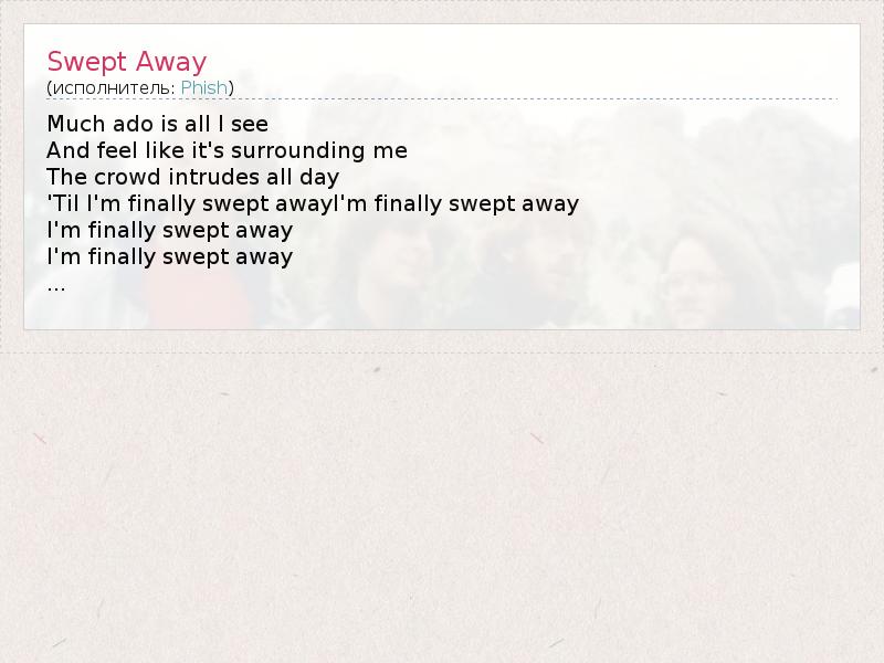 А как ты думаешь, о чем песня "Swept Away" ?