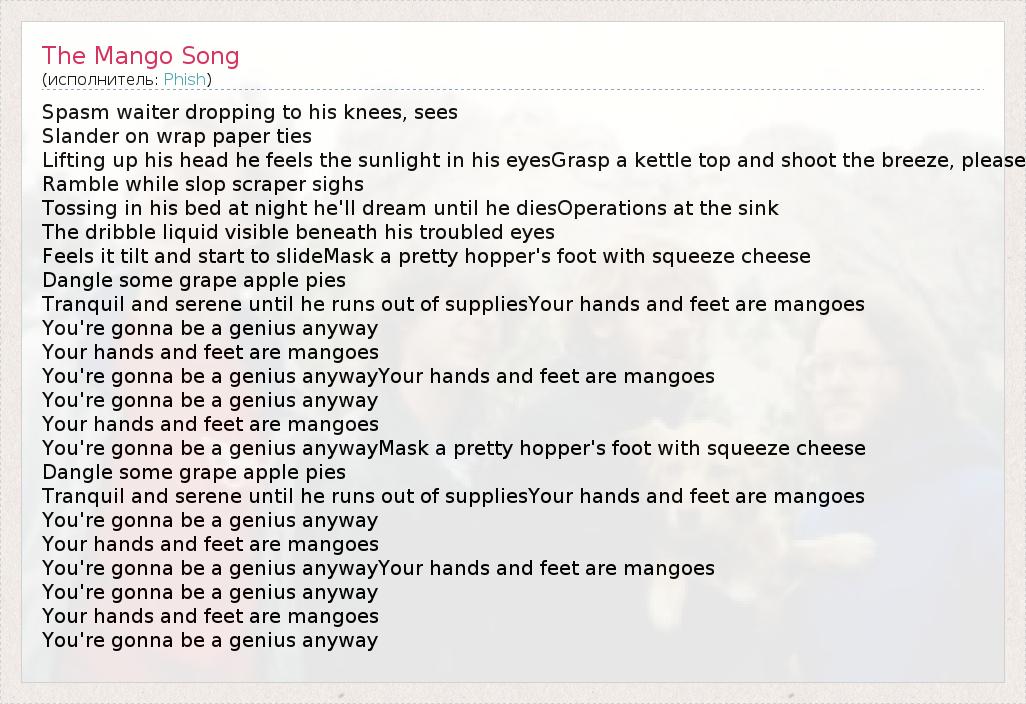 А как ты думаешь, о чем песня "The Mango Song" ?
