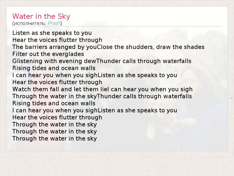 А как ты думаешь, о чем песня "Water in the Sky" ?