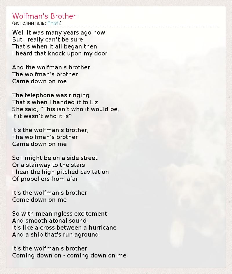 А как ты думаешь, о чем песня "Wolfman's Brother" ?