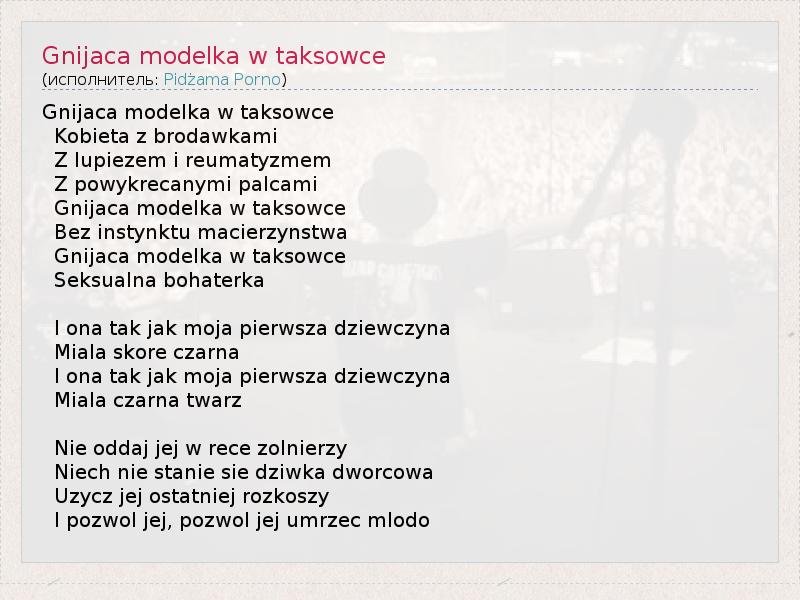 А как ты думаешь, о чем песня "Gnijaca modelka w taksowce" ?