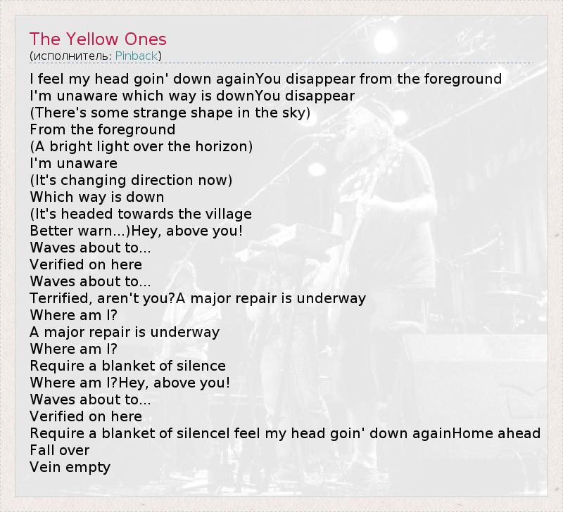 А как ты думаешь, о чем песня "The Yellow Ones" ?