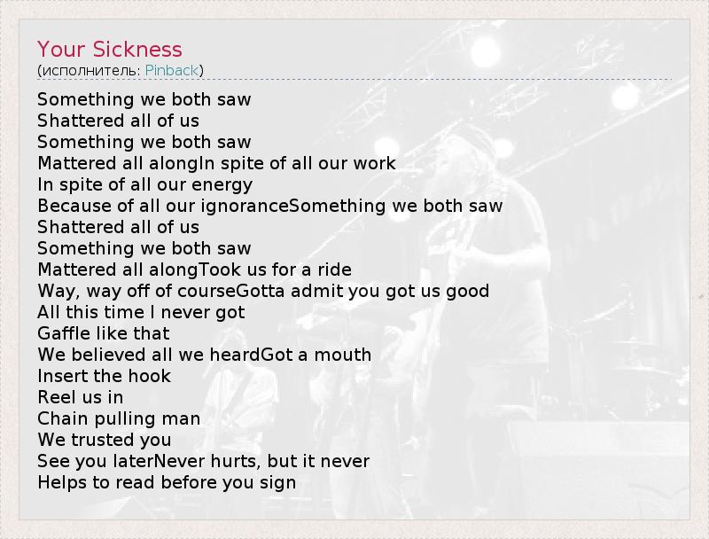 А как ты думаешь, о чем песня "Your Sickness" ?