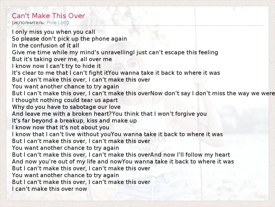 А как ты думаешь, о чем песня "Can't Make This Over" ?