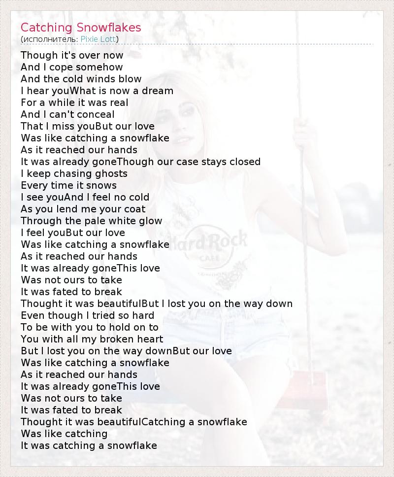 А как ты думаешь, о чем песня "Catching Snowflakes" ?