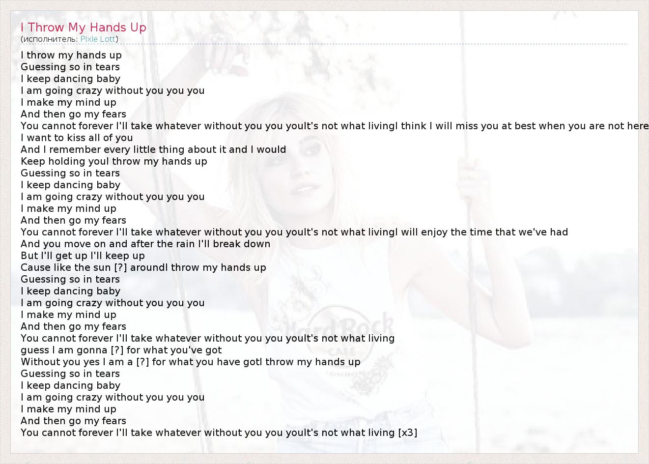 А как ты думаешь, о чем песня "I Throw My Hands Up" ?