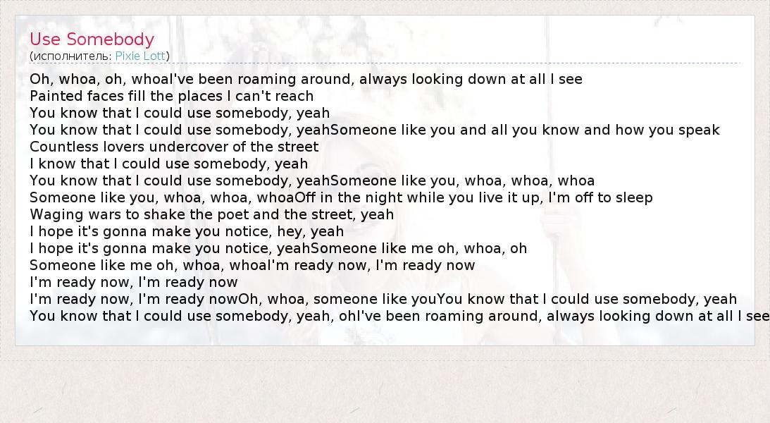 А как ты думаешь, о чем песня "Use Somebody" ?