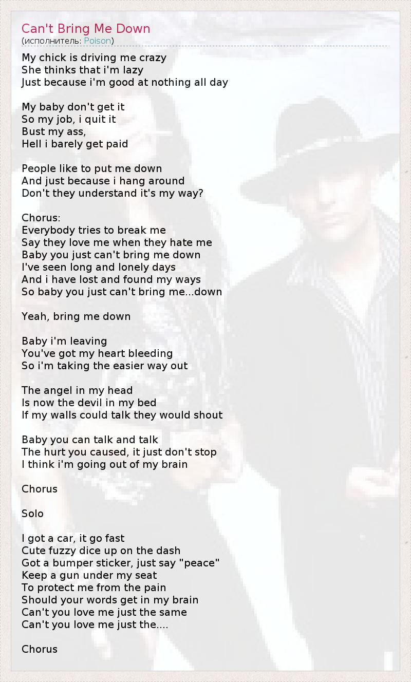 ГлавнаяИсполнителиPoisonCan't Bring Me Down