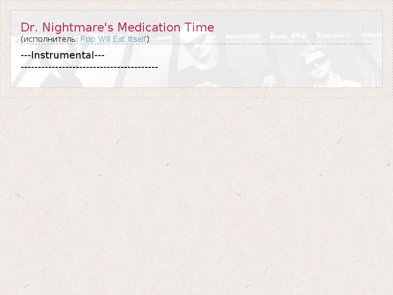 ГлавнаяИсполнителиPop Will Eat ItselfDr. Nightmare's Medication Time