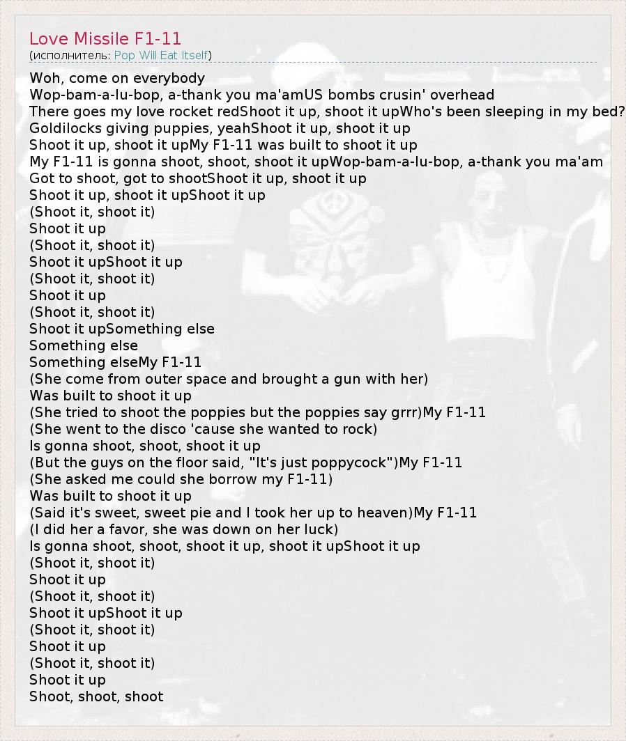 А как ты думаешь, о чем песня "Love Missile F1-11" ?