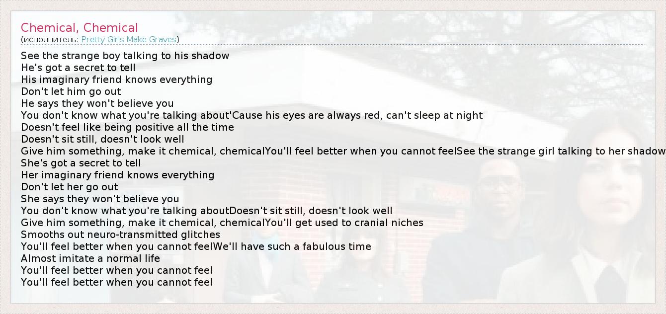 А как ты думаешь, о чем песня "Chemical, Chemical" ?