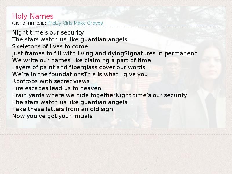 Это интересно:Прогресс налицо: если верить названию группы, то симпатичные девушки ко всем своим достоинствам добавили еще и такое общественно полезное дело, как копание могил! Ну разве не прелесть? Куда приятнее ложиться в могилу, вырытую юной красавицей, нежели горбатым древним стариком, которых мы привыкли представлять в этой роли! Если же обратить внимание еще и на творчество Pretty Girls Make Graves (PGMG),... продолжение