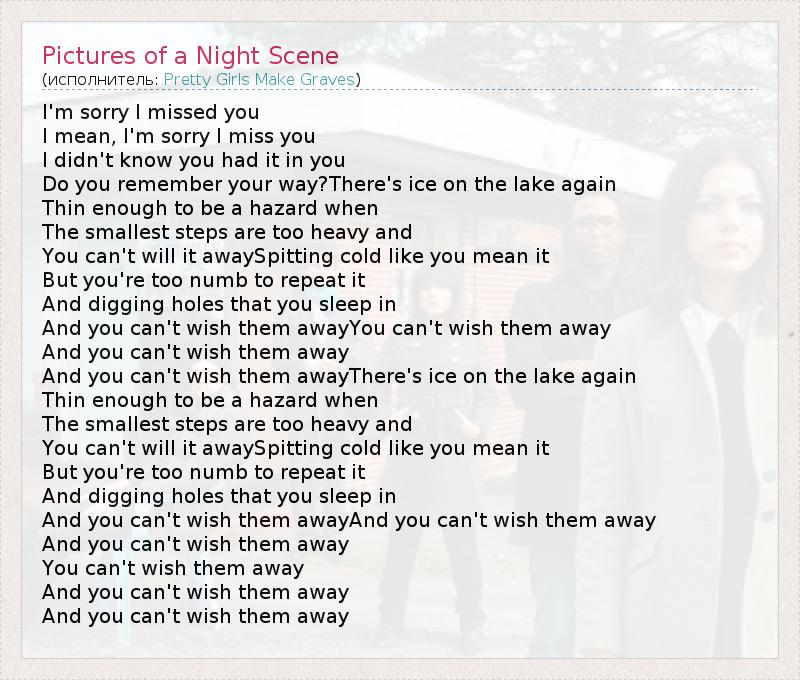 А как ты думаешь, о чем песня "Pictures of a Night Scene" ?