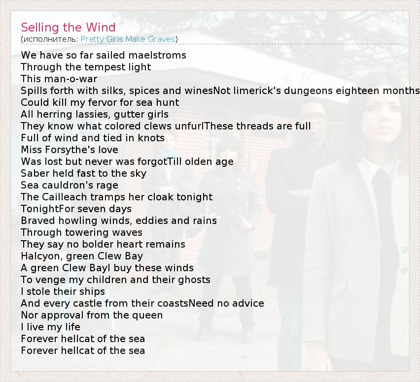 А как ты думаешь, о чем песня "Selling the Wind" ?