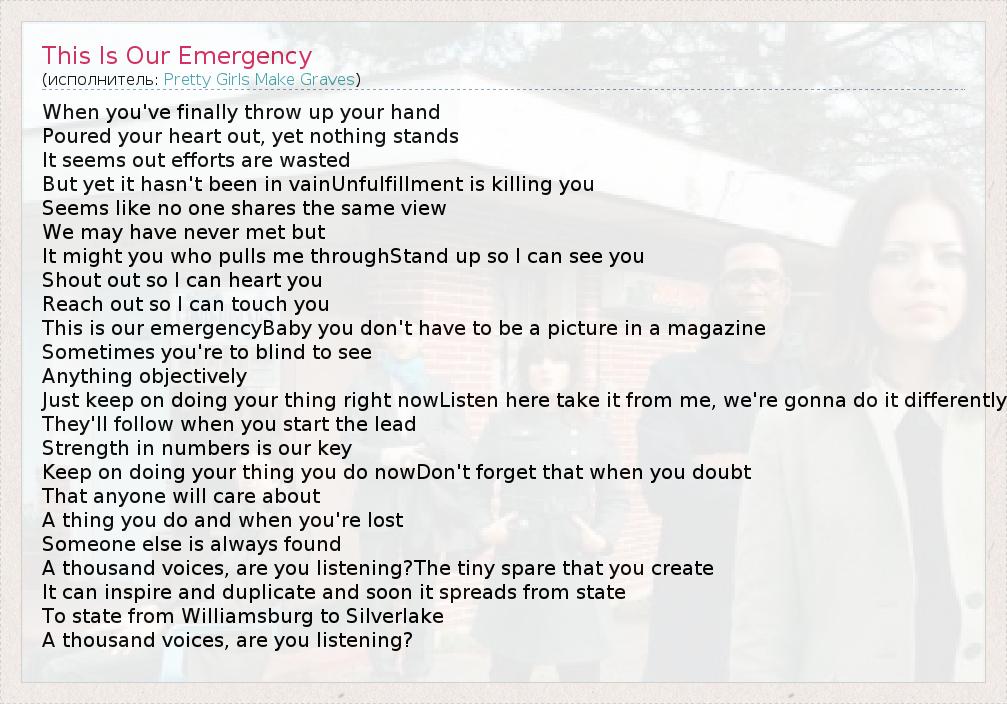 А как ты думаешь, о чем песня "This Is Our Emergency" ?