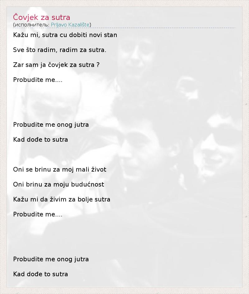 А как ты думаешь, о чем песня "Čovjek za sutra" ?