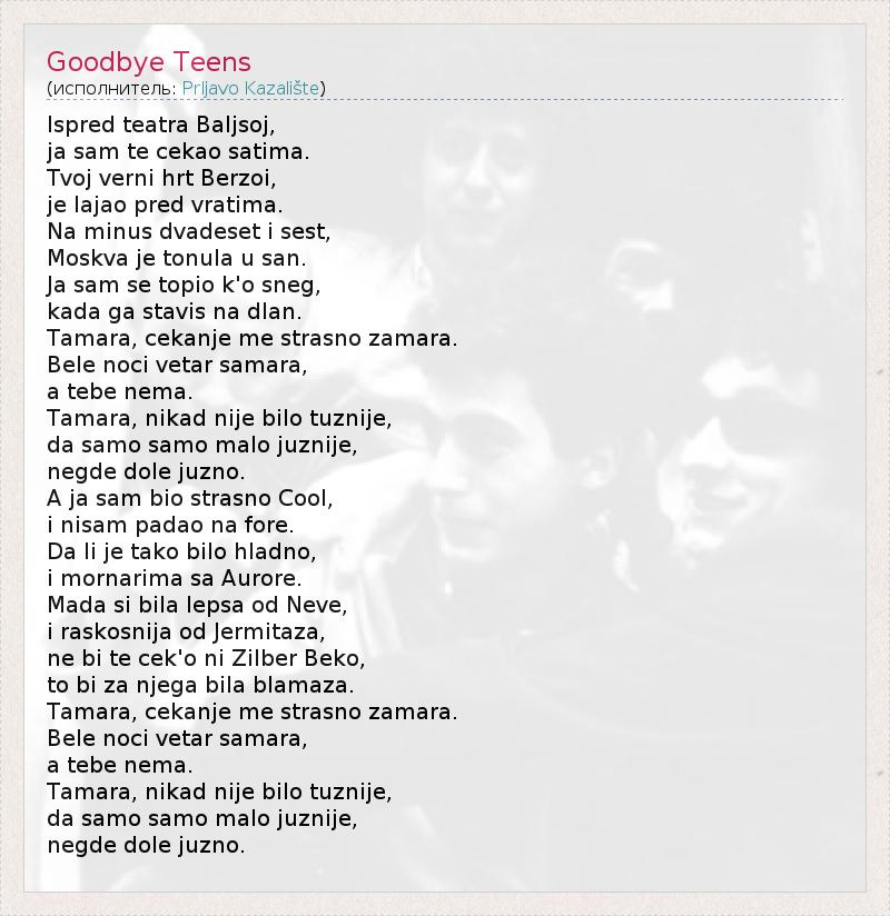 А как ты думаешь, о чем песня "Goodbye Teens" ?