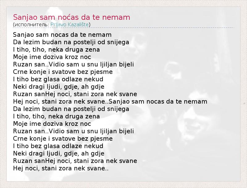 А как ты думаешь, о чем песня "Sanjao sam noćas da te nemam" ?