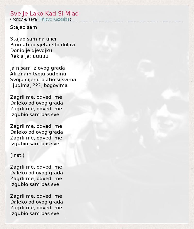 А как ты думаешь, о чем песня "Sve Je Lako Kad Si Mlad" ?