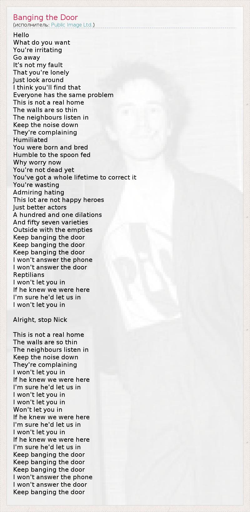 А как ты думаешь, о чем песня "Banging the Door" ?