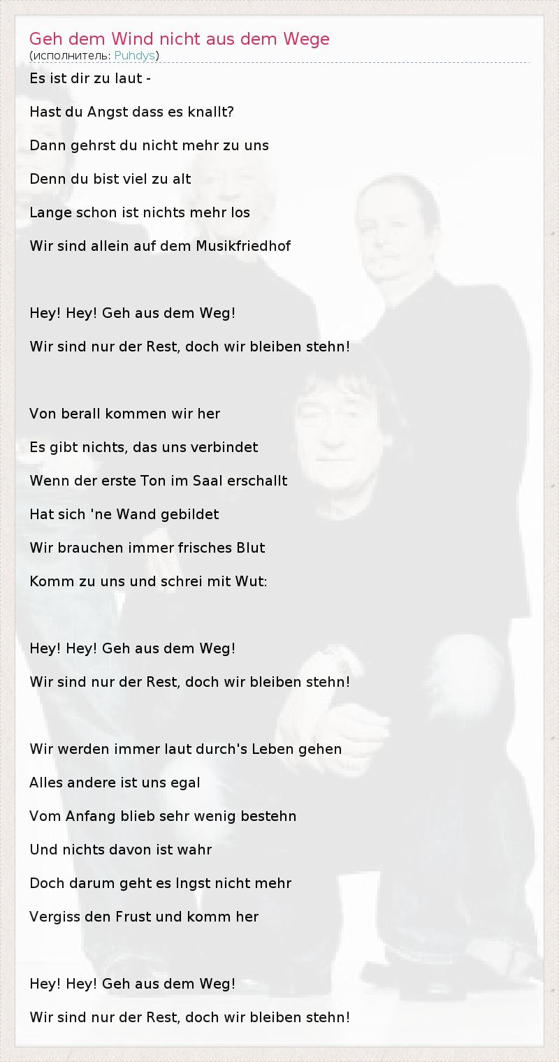 А как ты думаешь, о чем песня "Geh dem Wind nicht aus dem Wege" ?