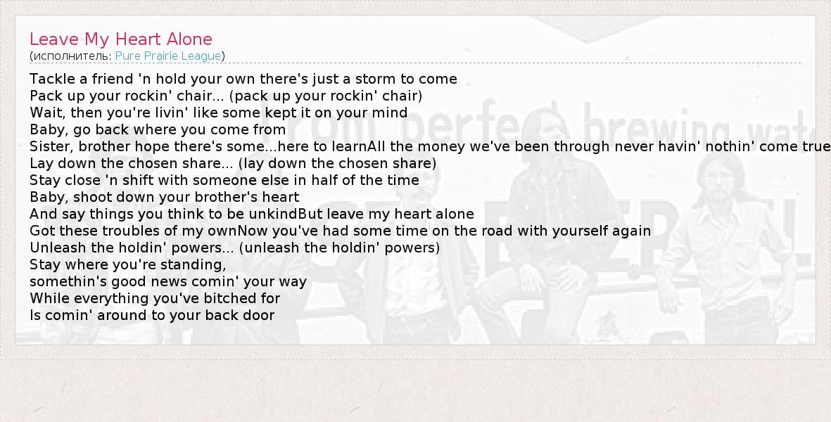 А как ты думаешь, о чем песня "Leave My Heart Alone" ?