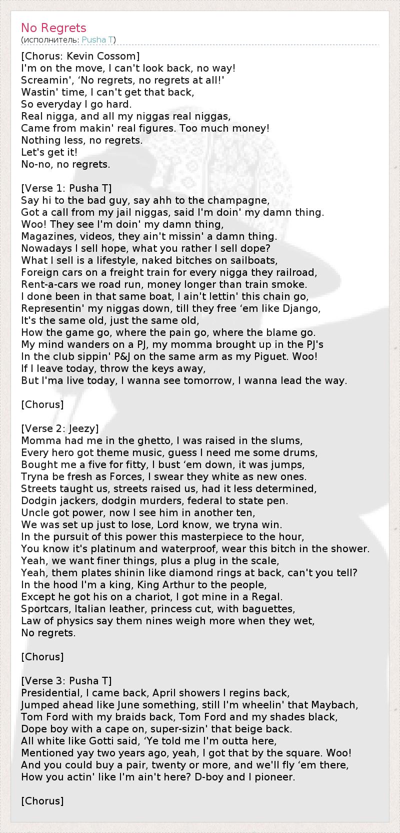 А как ты думаешь, о чем песня "No Regrets" ?
