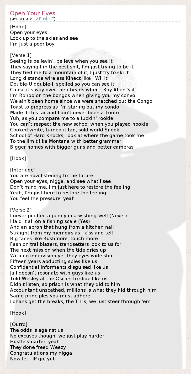 А как ты думаешь, о чем песня "Open Your Eyes" ?