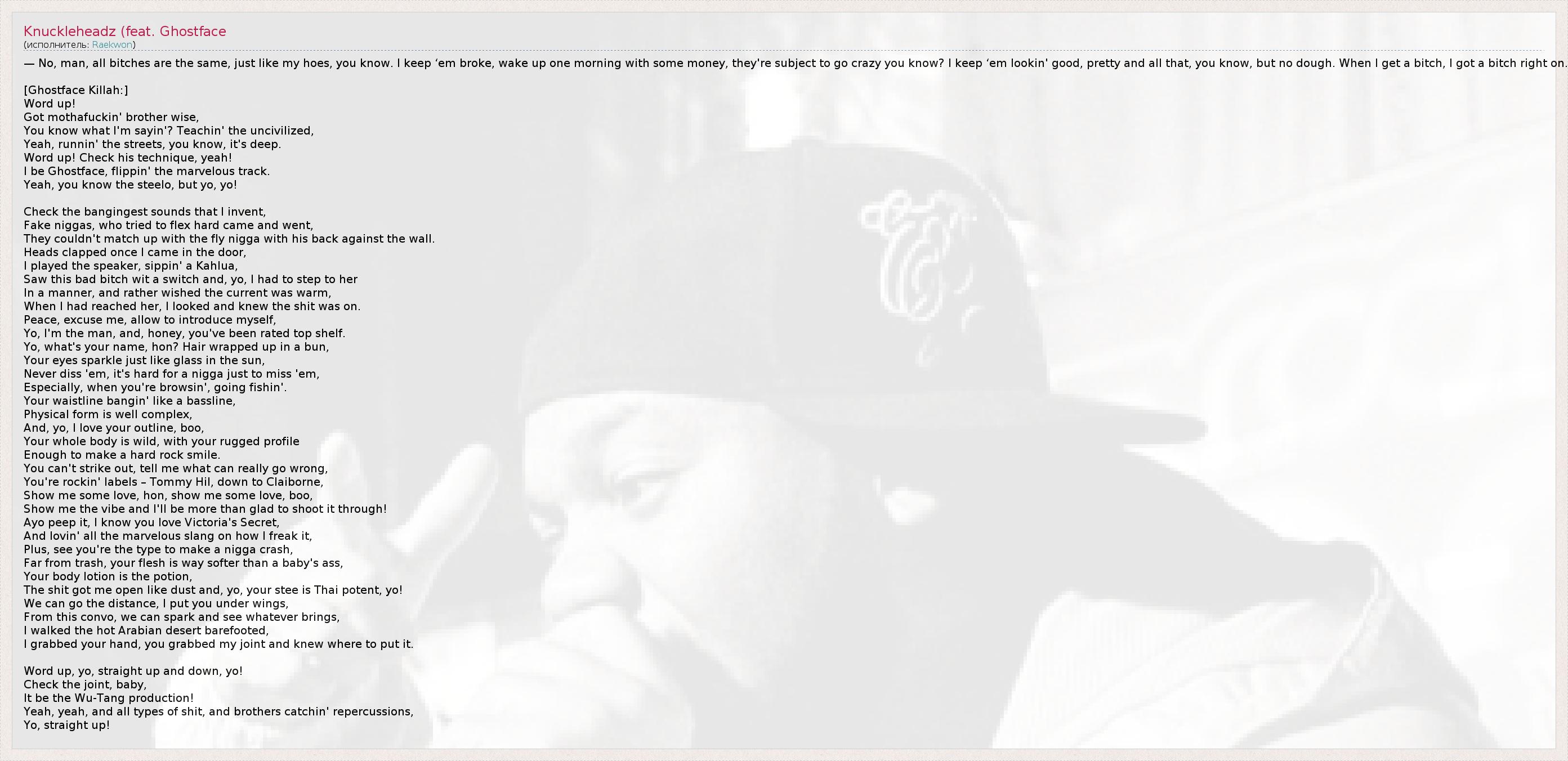 ГлавнаяИсполнителиRaekwonKnuckleheadz (feat. Ghostface