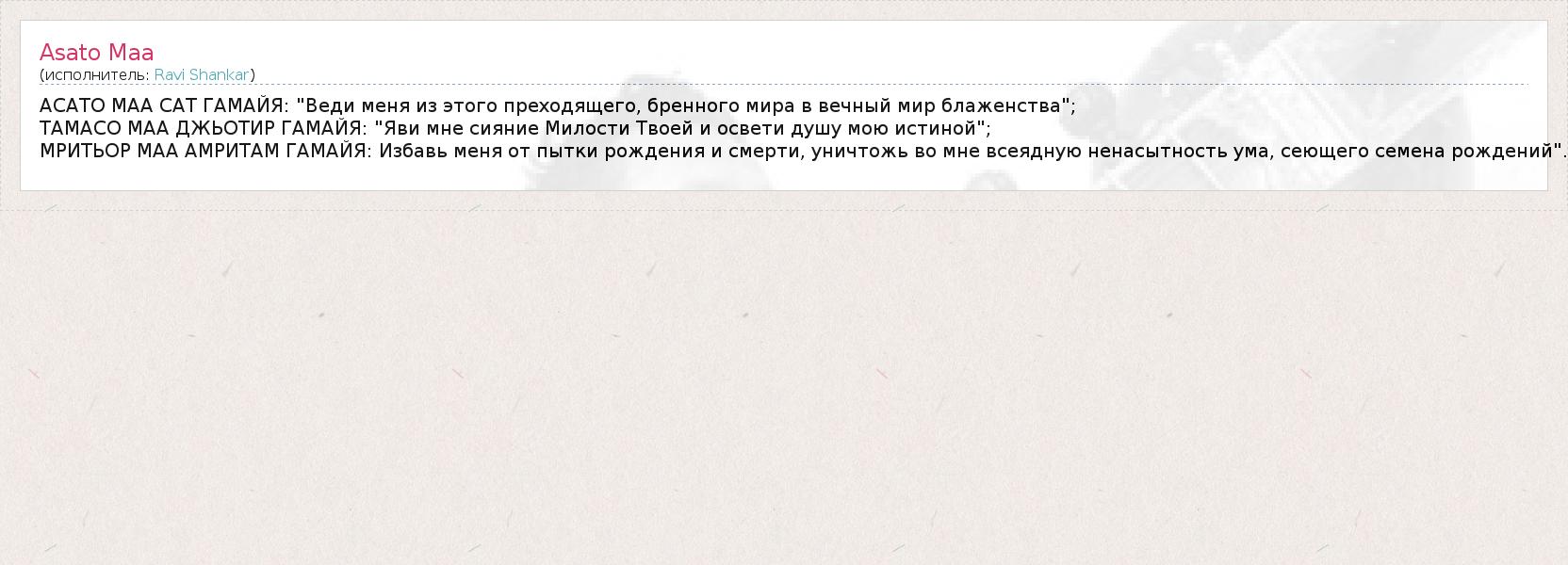 АСАТО МАА САТ ГАМАЙЯ: "Веди меня из этого преходящего, бренного мира в вечный мир блаженства";