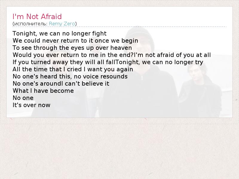 А как ты думаешь, о чем песня "I'm Not Afraid" ?