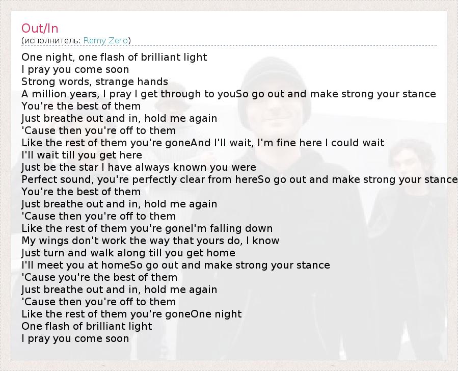 Это интересно:В 1989 году, в Бирмингэме, штат Алабама, появилась новая группа Remy Zero. Ее основали: Кинджун Тэйт (вокал, гитара), Шелби Тэйт (вокал, гитара, клавиши), Грегори Слэй (ударные) и Джефри Кейн (гитара). Школьные друзья выбрали для себя направление альтернативный рок. В то время их романтичная, в чем-то капризная музыка отличалась от царившей повсюду атмосферы агрессивной юности. Впервые группа... продолжение