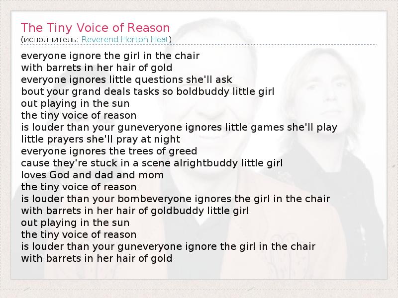 А как ты думаешь, о чем песня "The Tiny Voice of Reason" ?