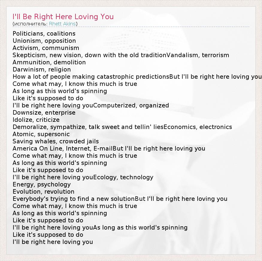 ГлавнаяИсполнителиRhett AkinsI'll Be Right Here Loving You