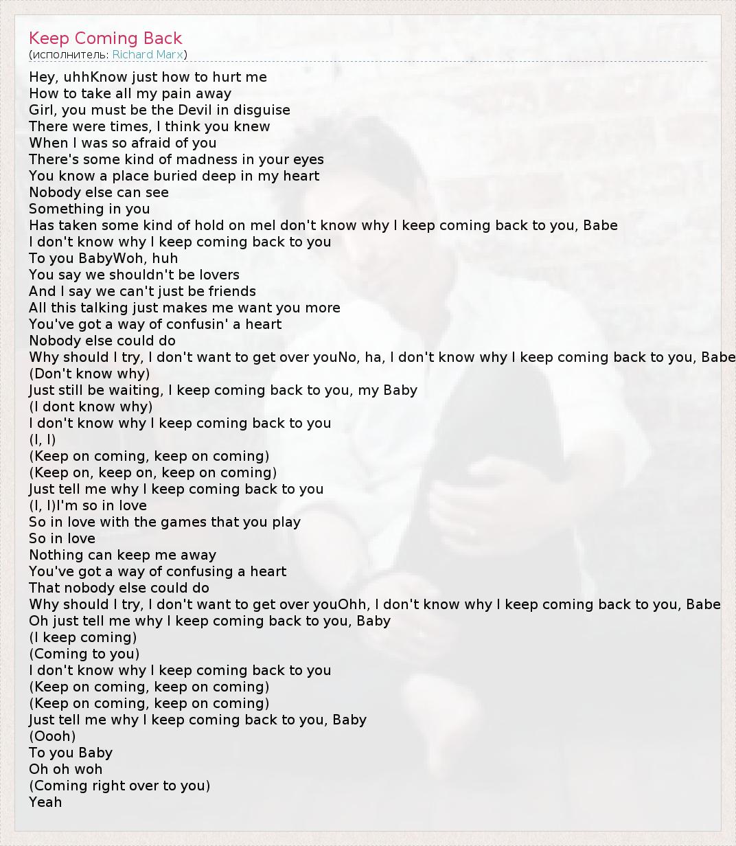А как ты думаешь, о чем песня "Keep Coming Back" ?