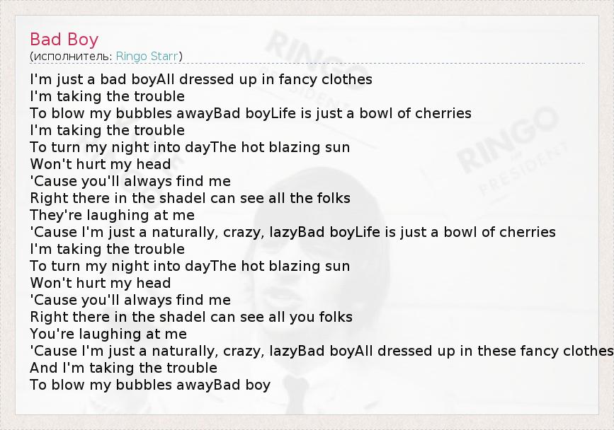 А как ты думаешь, о чем песня "Bad Boy" ?