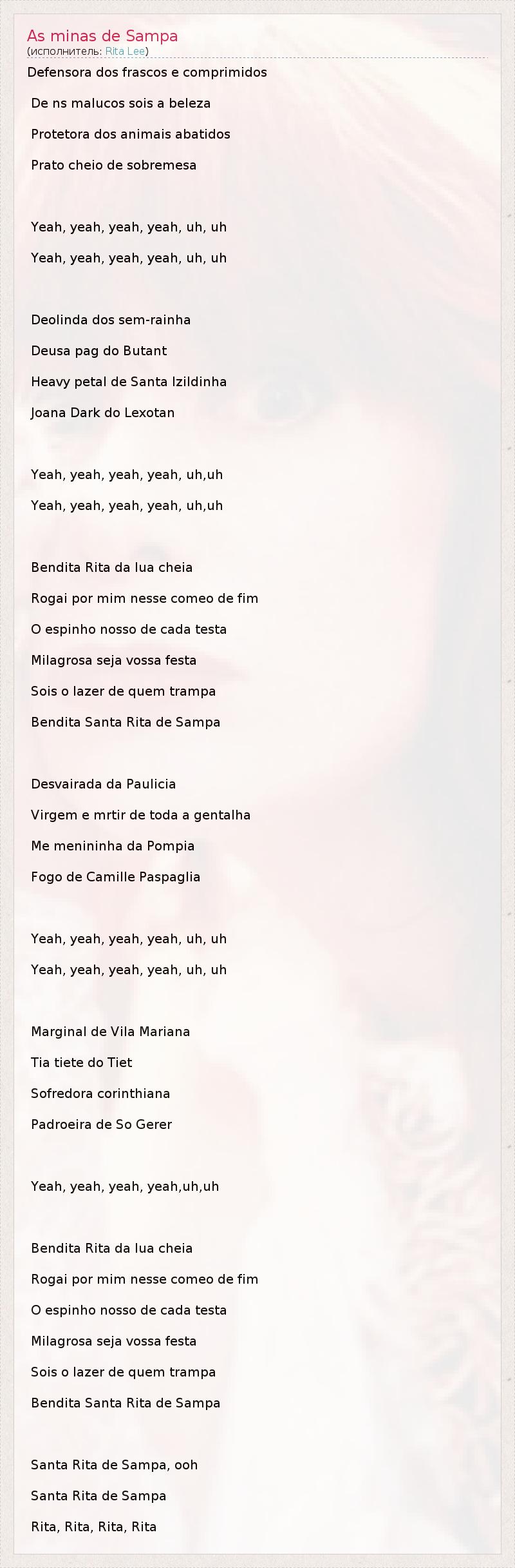 А как ты думаешь, о чем песня "As minas de Sampa" ?
