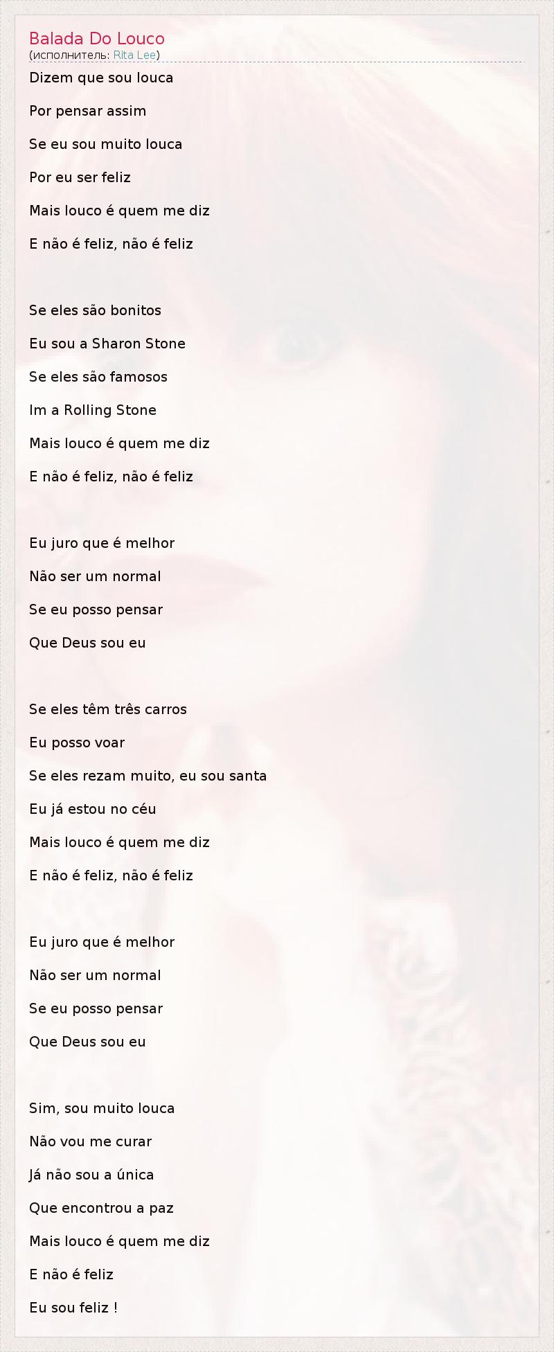 А как ты думаешь, о чем песня "Balada Do Louco" ?
