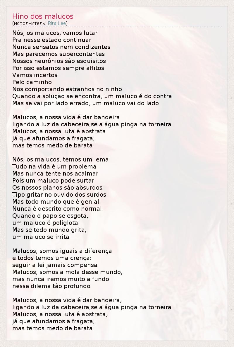 А как ты думаешь, о чем песня "Hino dos malucos" ?