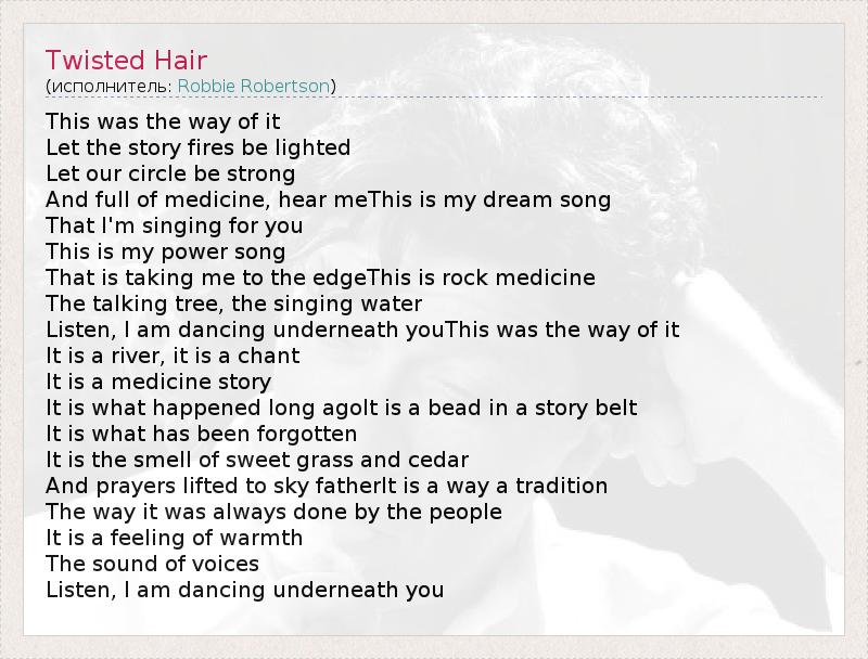 А как ты думаешь, о чем песня "Twisted Hair" ?