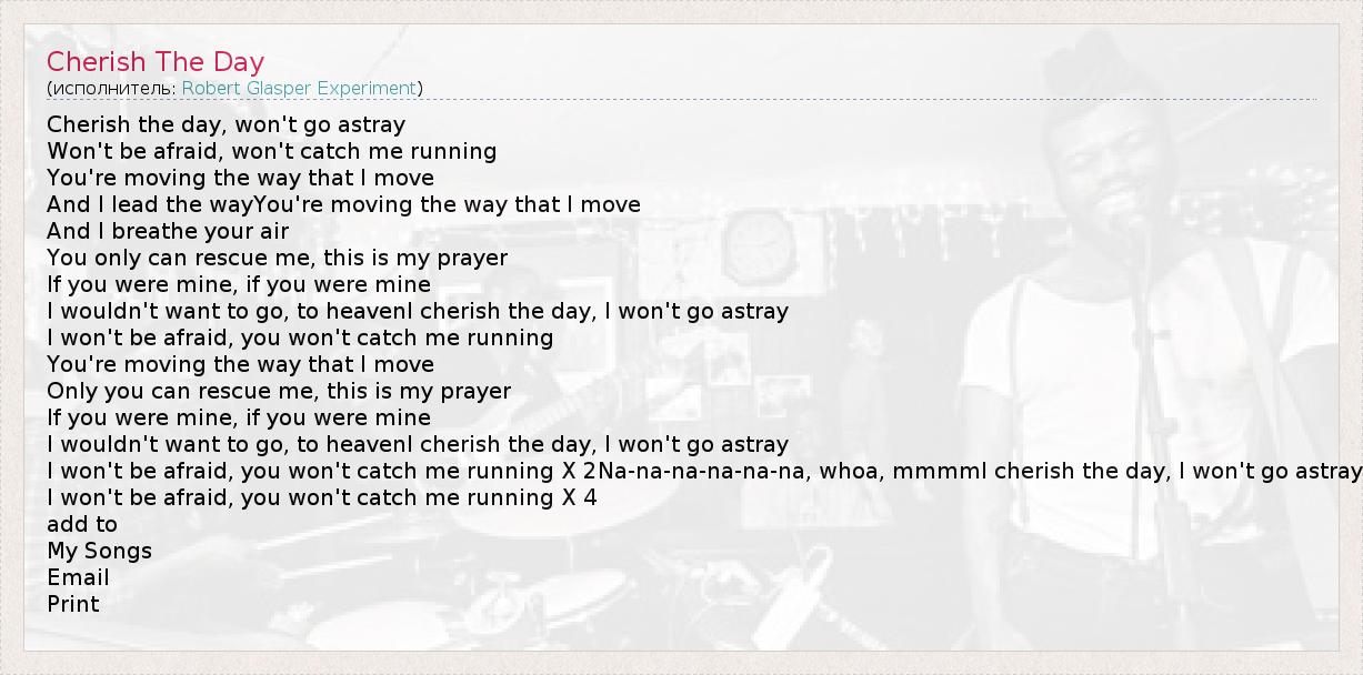 А как ты думаешь, о чем песня "Cherish The Day" ?