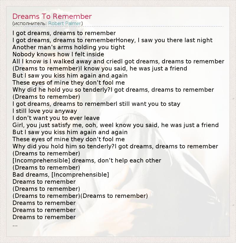 А как ты думаешь, о чем песня "Dreams To Remember" ?