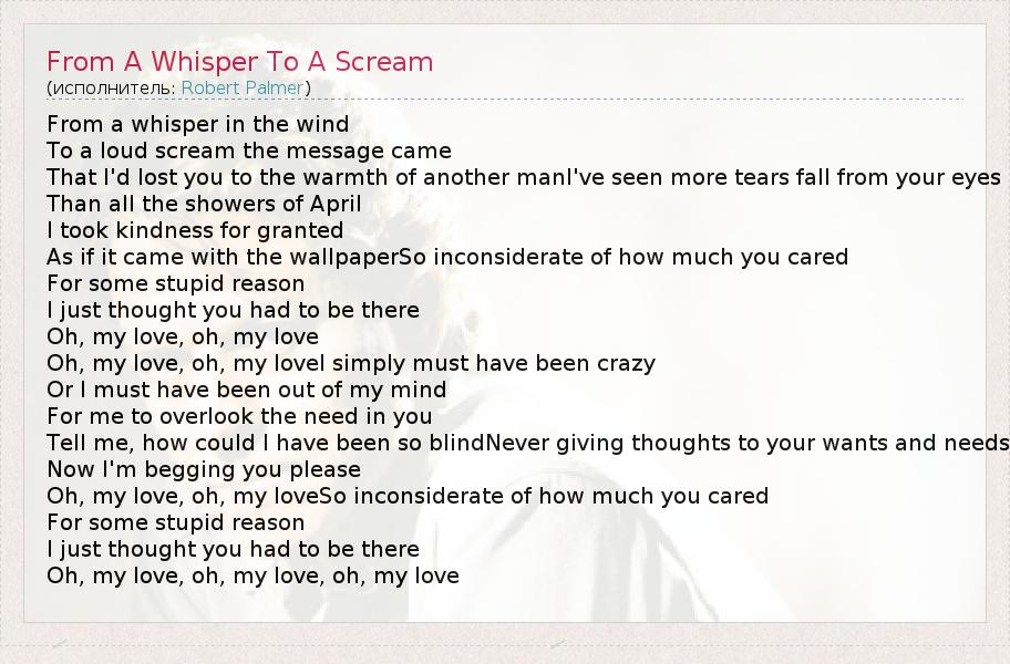 А как ты думаешь, о чем песня "From A Whisper To A Scream" ?