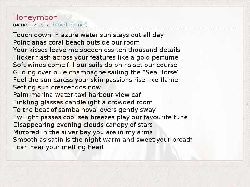 А как ты думаешь, о чем песня "Honeymoon" ?