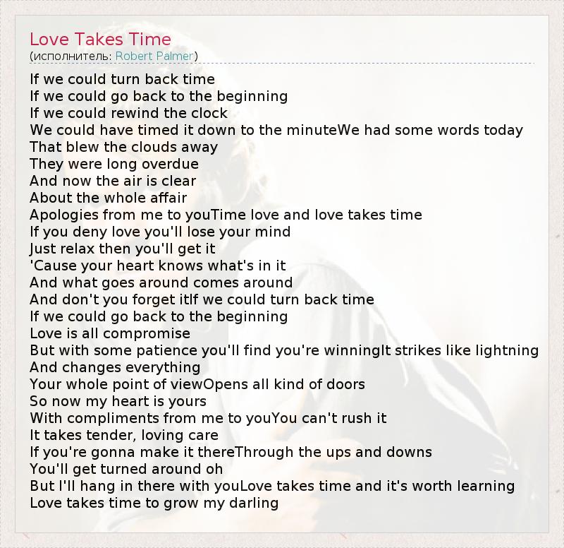 А как ты думаешь, о чем песня "Love Takes Time" ?