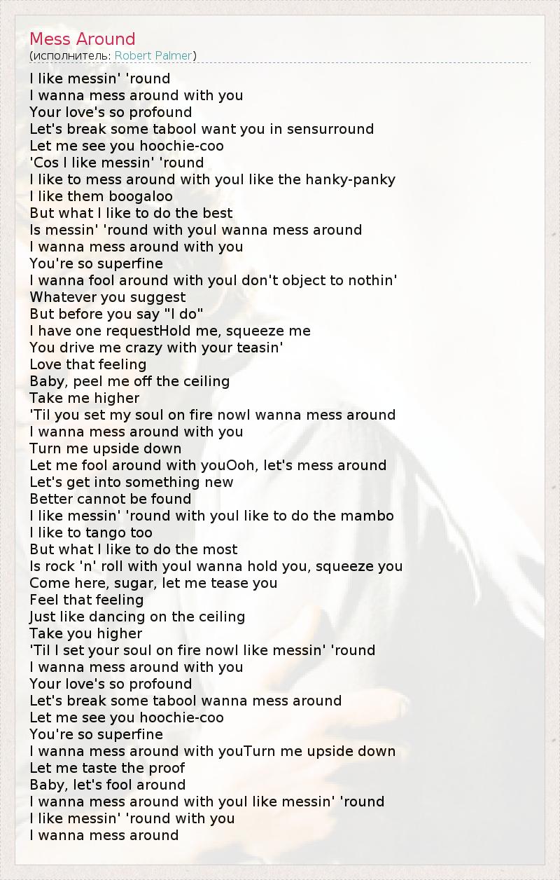 Это интересно:Карьера певца "голубоглазого соула" Роберта Палмера (Robert Palmer) была "от противного". Тогда как ранние работы исполнителя получили признание за гармоничное смешение рока, ритм-н-блюза и регги, его записи расходились плохо, а известность он получил как поп-певец, исполнявший отнюдь не самые качественные вещи. К середине 80-х Палмер, однако, стал звездой, хотя своей популярностью... продолжение