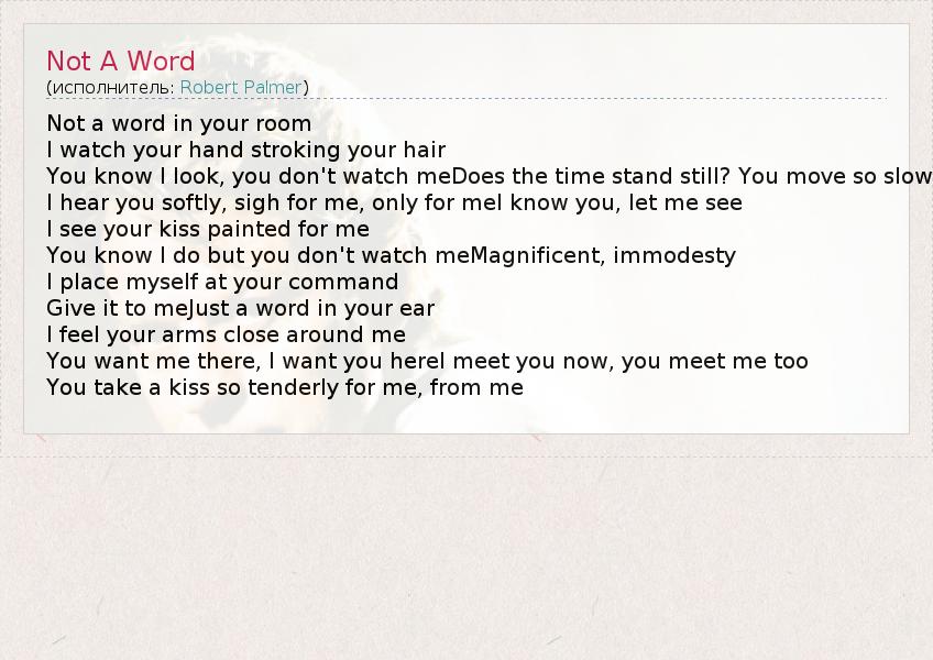Это интересно:Карьера певца "голубоглазого соула" Роберта Палмера (Robert Palmer) была "от противного". Тогда как ранние работы исполнителя получили признание за гармоничное смешение рока, ритм-н-блюза и регги, его записи расходились плохо, а известность он получил как поп-певец, исполнявший отнюдь не самые качественные вещи. К середине 80-х Палмер, однако, стал звездой, хотя своей популярностью... продолжение