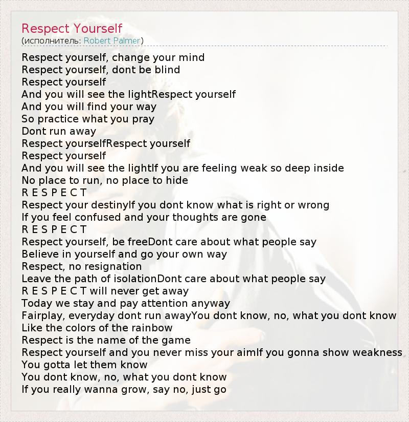 А как ты думаешь, о чем песня "Respect Yourself" ?
