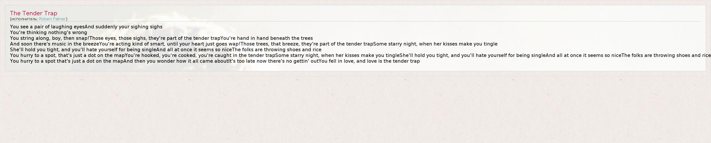 А как ты думаешь, о чем песня "The Tender Trap" ?